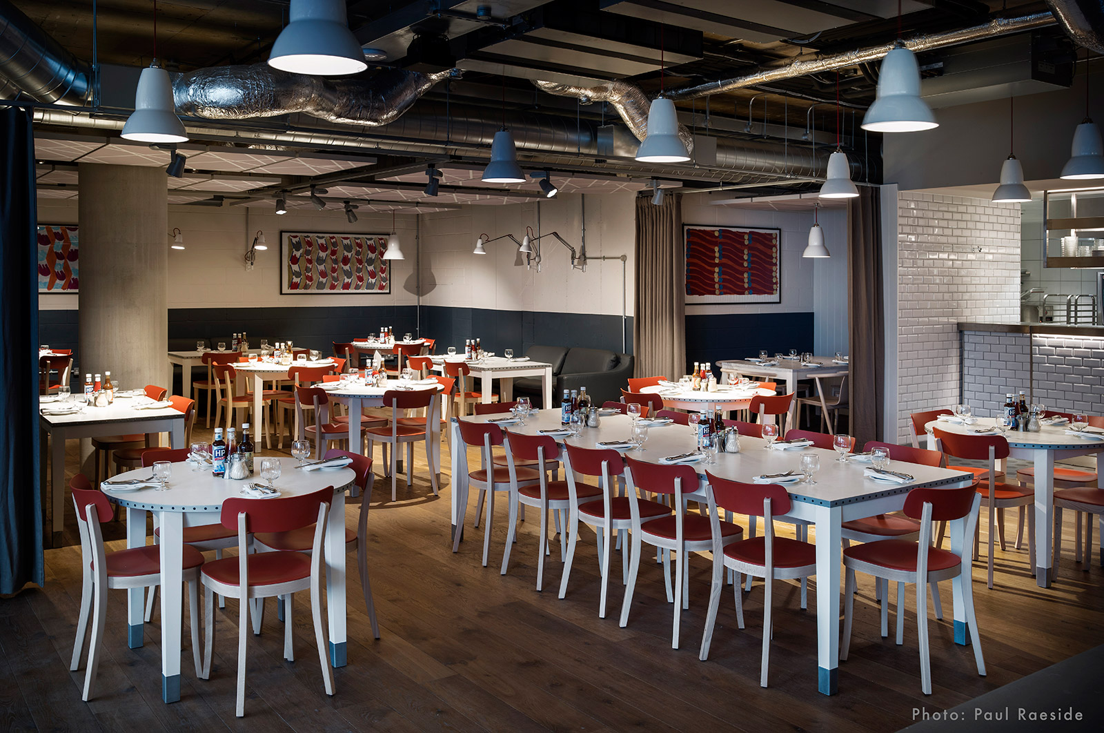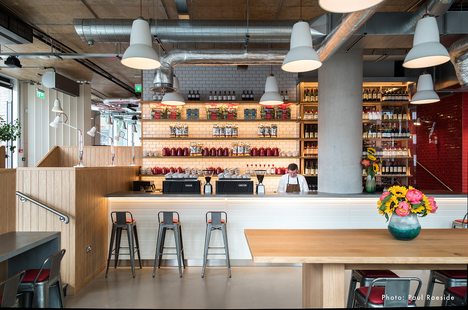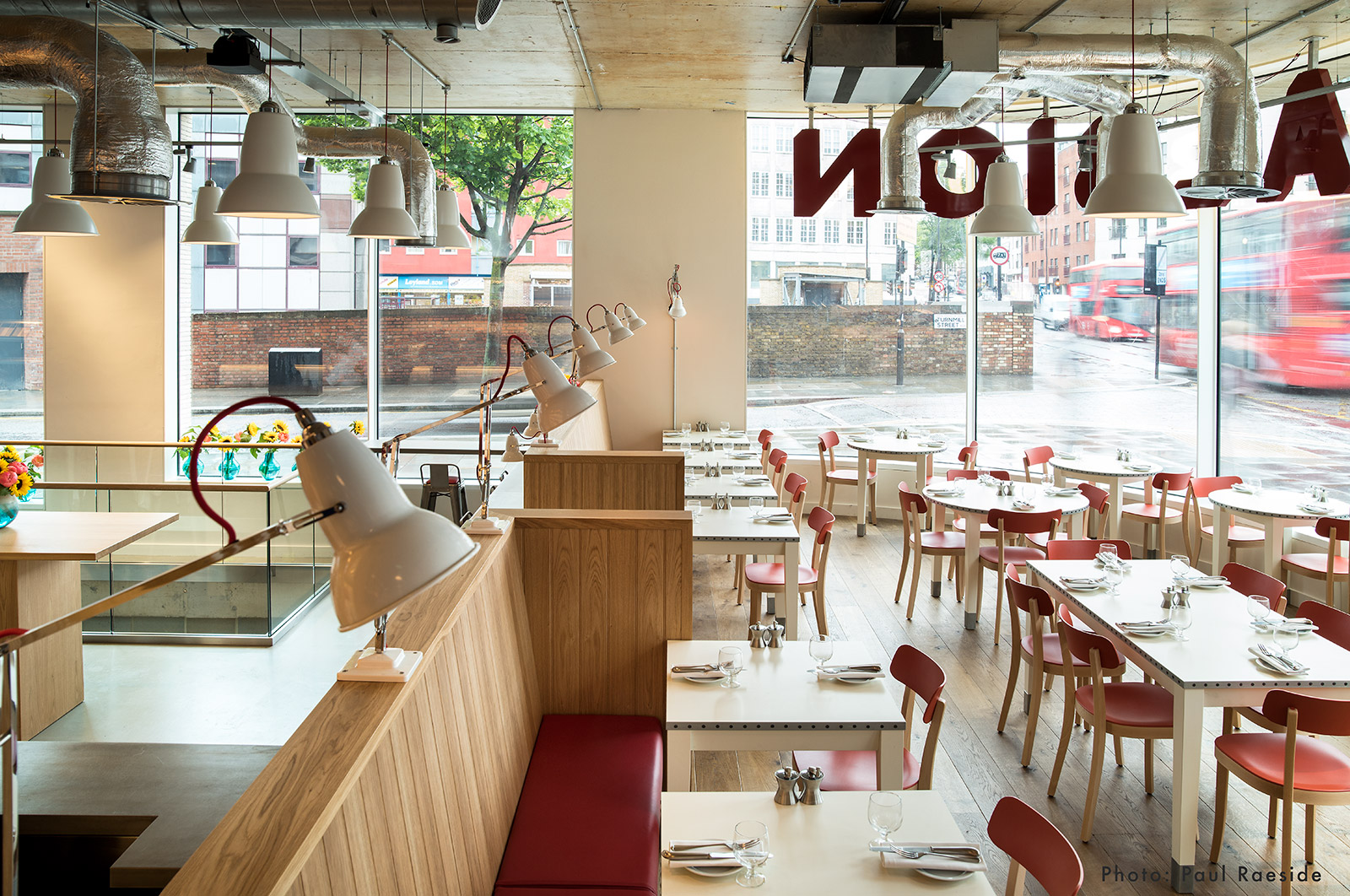 Located on the iconic Turnmill site in the heart of the Clerkenwell design district, the new Albion restaurant, (the largest to date), is a celebration of Britain and the local area in every sense – from the artisan produce on the shelves and seasonal ingredients in the kitchen to the design of the space itself, down to the smallest detail. Open from breakfast though brunch and lunch to supper, the new site also incorporates a takeaway foods, hot drinks and juice bar, a well-stocked bakery, a craft beer and wine shop, an oyster bar, a cheese and charcuterie corner, a cocktail bar and a pie room. Multiple Anglepoise® Original 1227™ Pendant, Desk and Wall Mounted Lights dominate the entire ground floor space, complemented by furniture from Ercol, Benchmark and Bethan Gray.