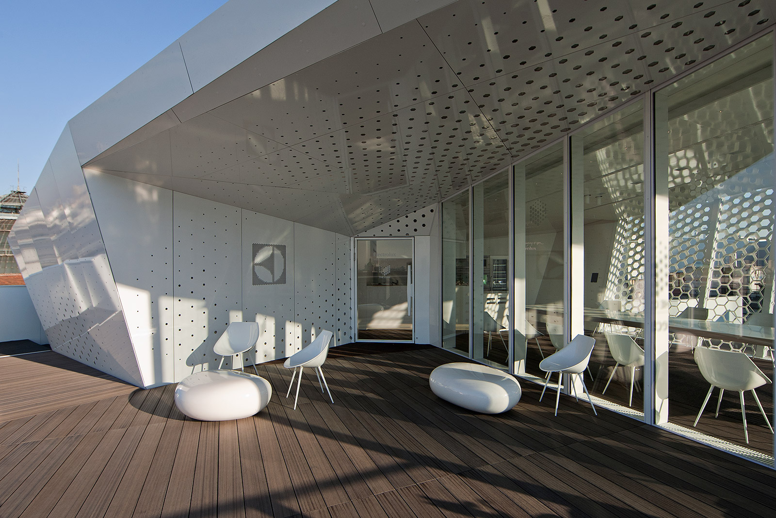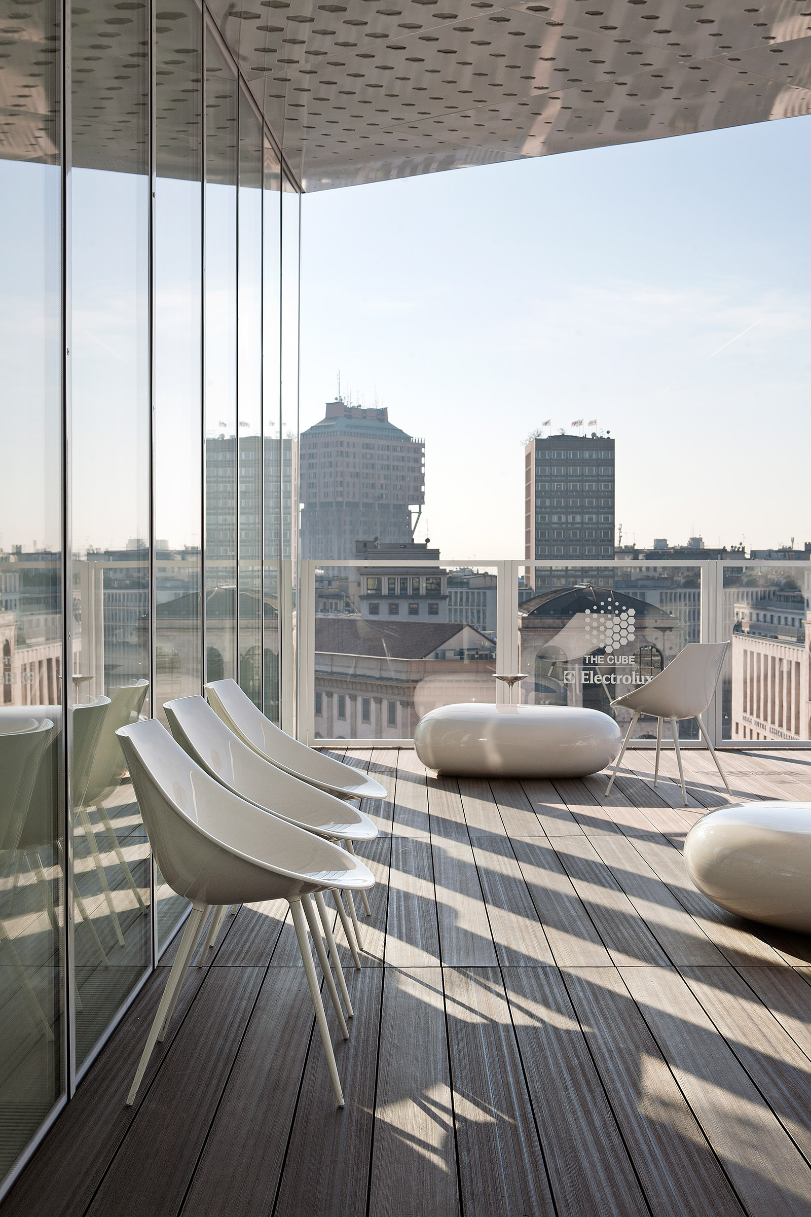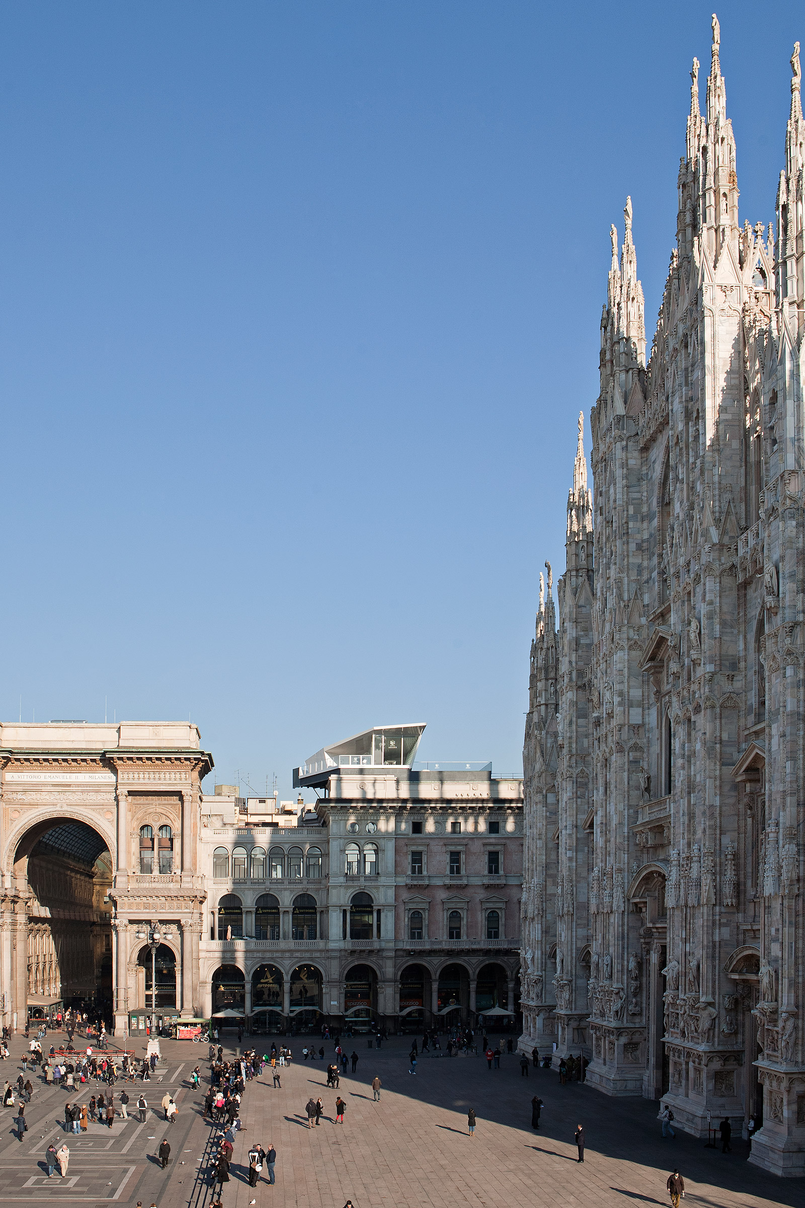 The dining pavilion seats 18 people for lunch or dinner and offers a superlative view of Piazza del Duomo, just a few meters away from the Cathedral’s spires, facing Palazzo Reale and the Arengario, the area hosting the new Museo del Novecento.