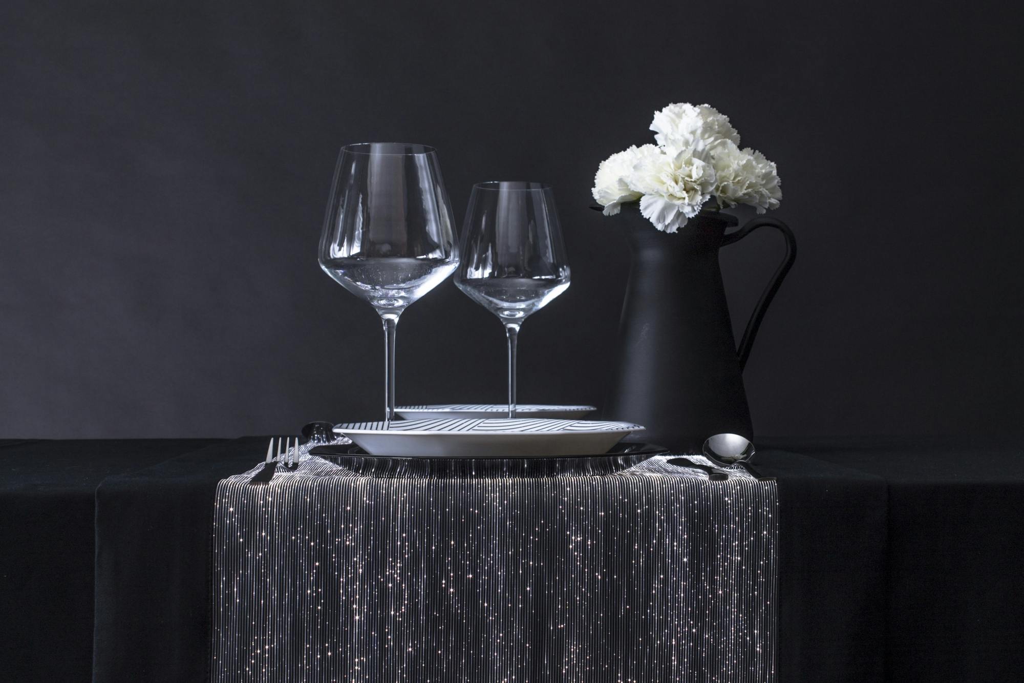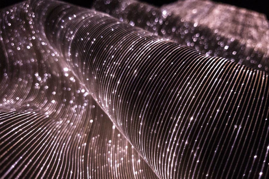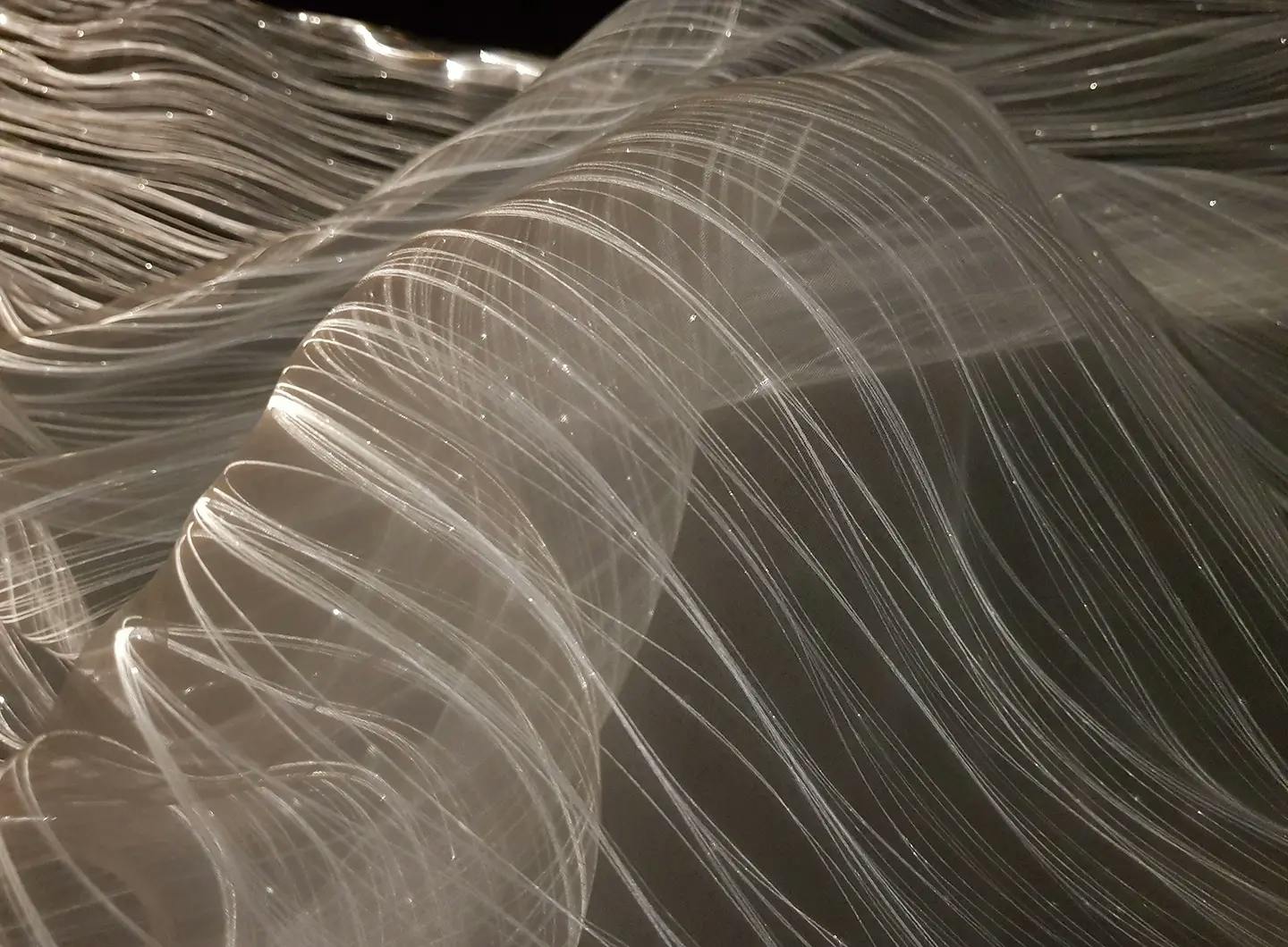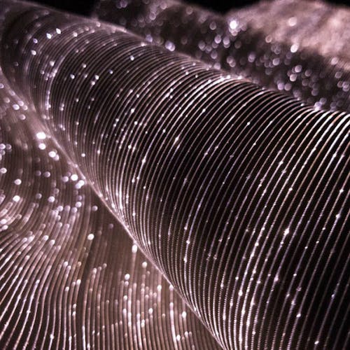 La fibra ottica, combinata con un particolare elemento “scintillante” ad alto potere rifrattivo, viene intrecciata con materiali tradizionali come la viscosa. Successivamente, viene applicata una sorgente luminosa a LED che illumina l’intera superficie del tessuto, creando l’inconfondibile effetto “cielo stellato”.