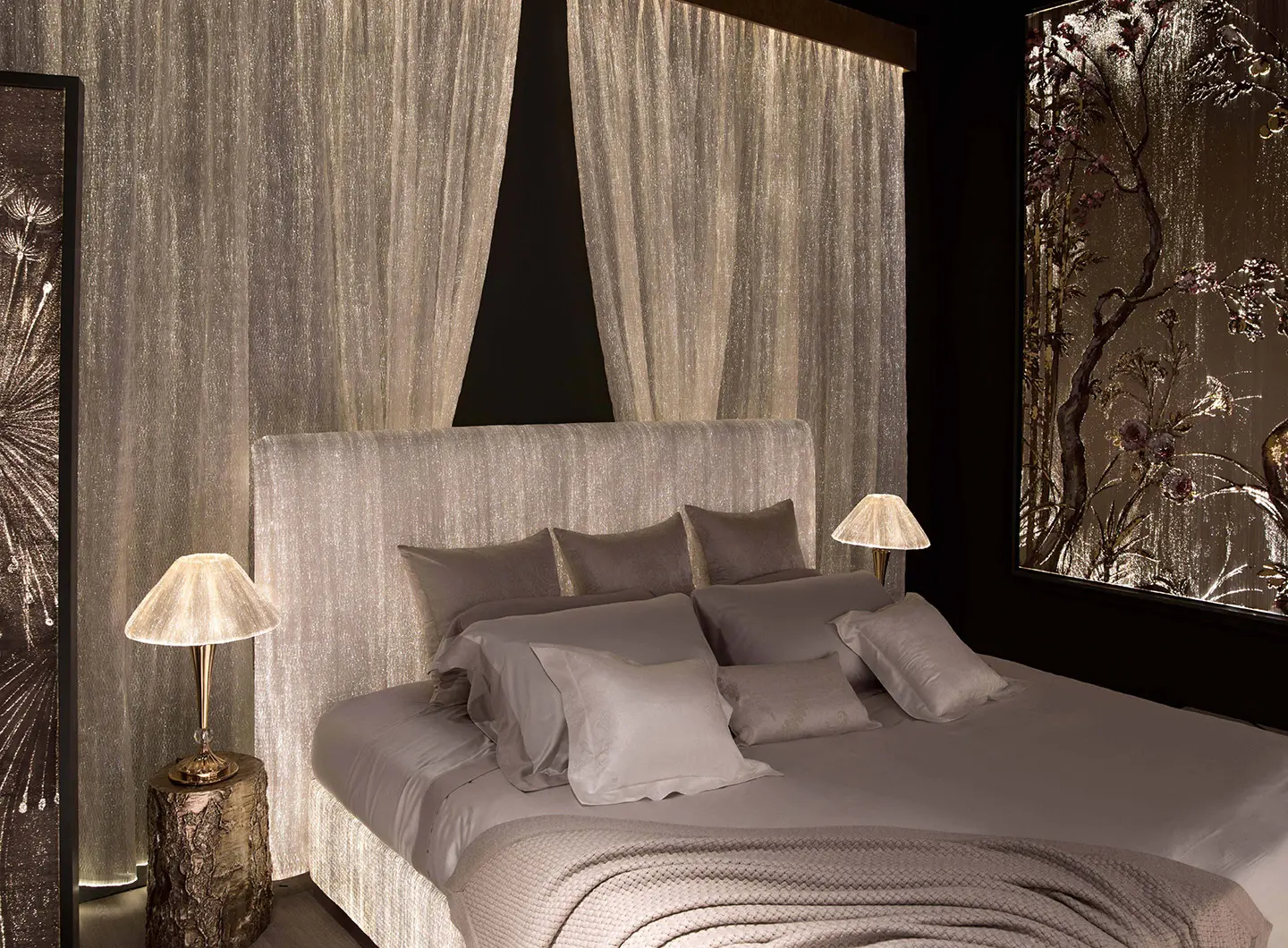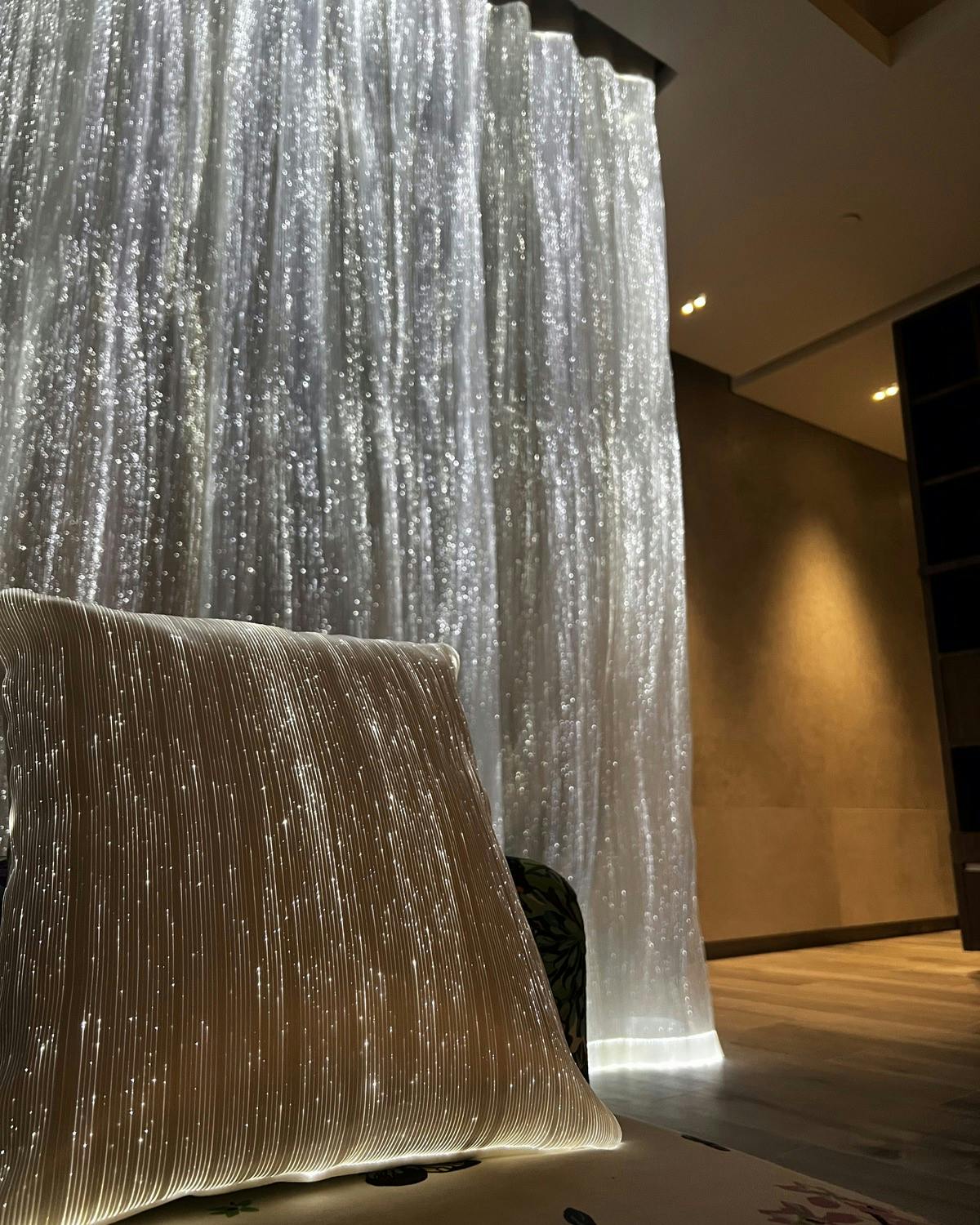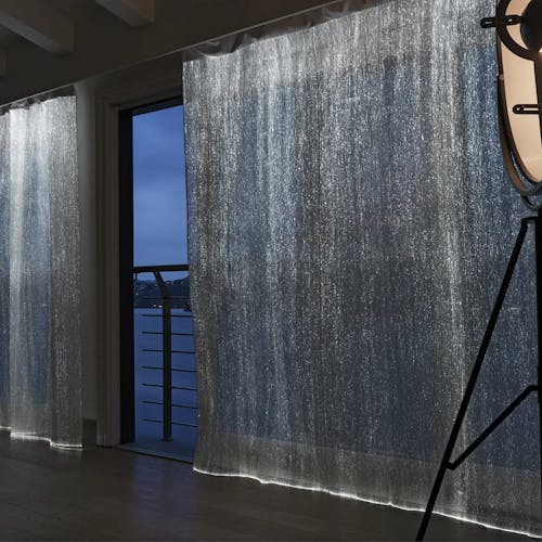 Le applicazioni di DreamLux® sono infinite: tende, installazioni a soffitto, decorazioni luminose artistiche, pannelli decorativi dipinti o stampati a mano, testiere, moda e molto altro ancora.