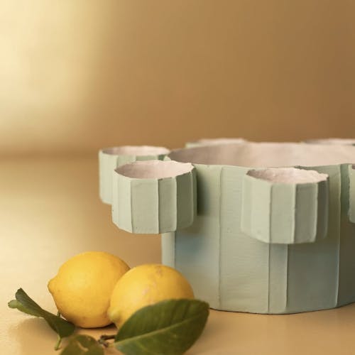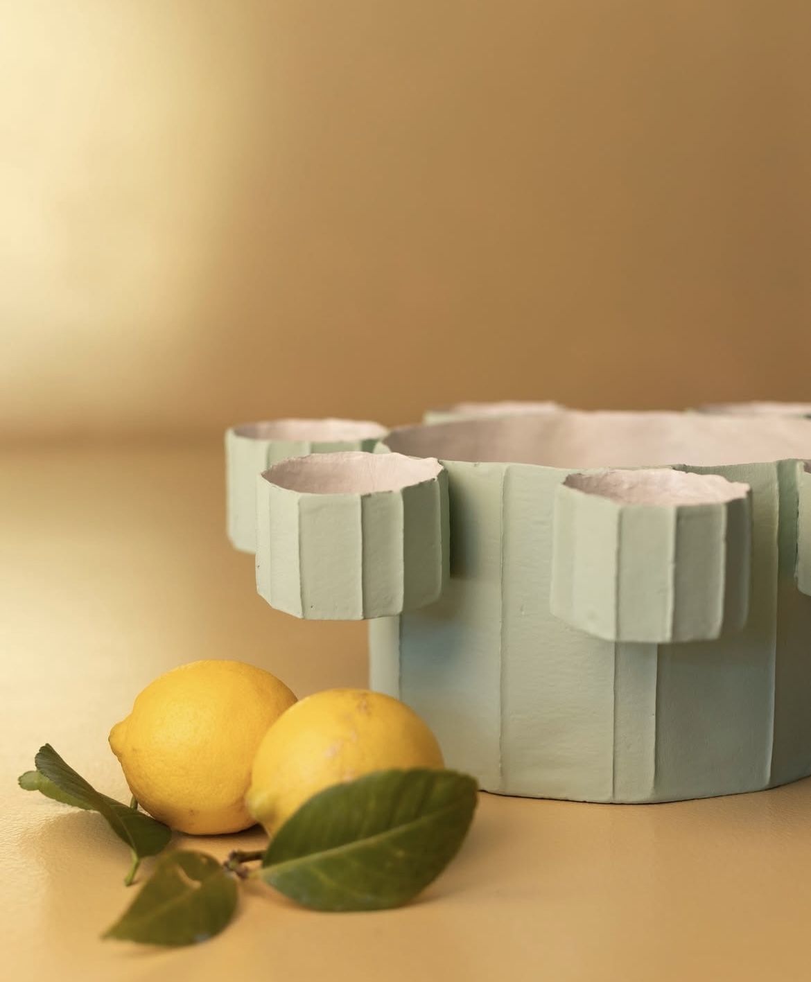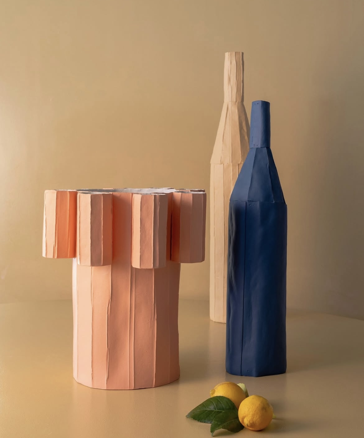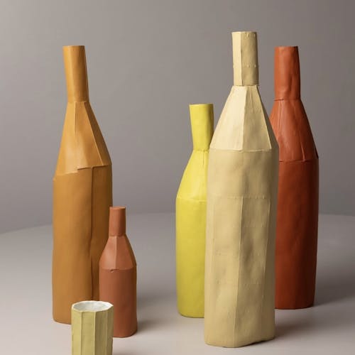 All’inizio degli anni Duemila, nel suo laboratorio di ceramica in Veneto, dove vive e lavora tuttora, nacque la collezione “Cartocci”. Oggetti solidi, ma leggeri e sottili come la carta, in cui risiede tutto il suo universo creativo: l’affinità con una tecnica che richiede stratificazione e attesa, la ricerca di forme che accettano l’imperfezione, il suo senso per la solidità del colore.